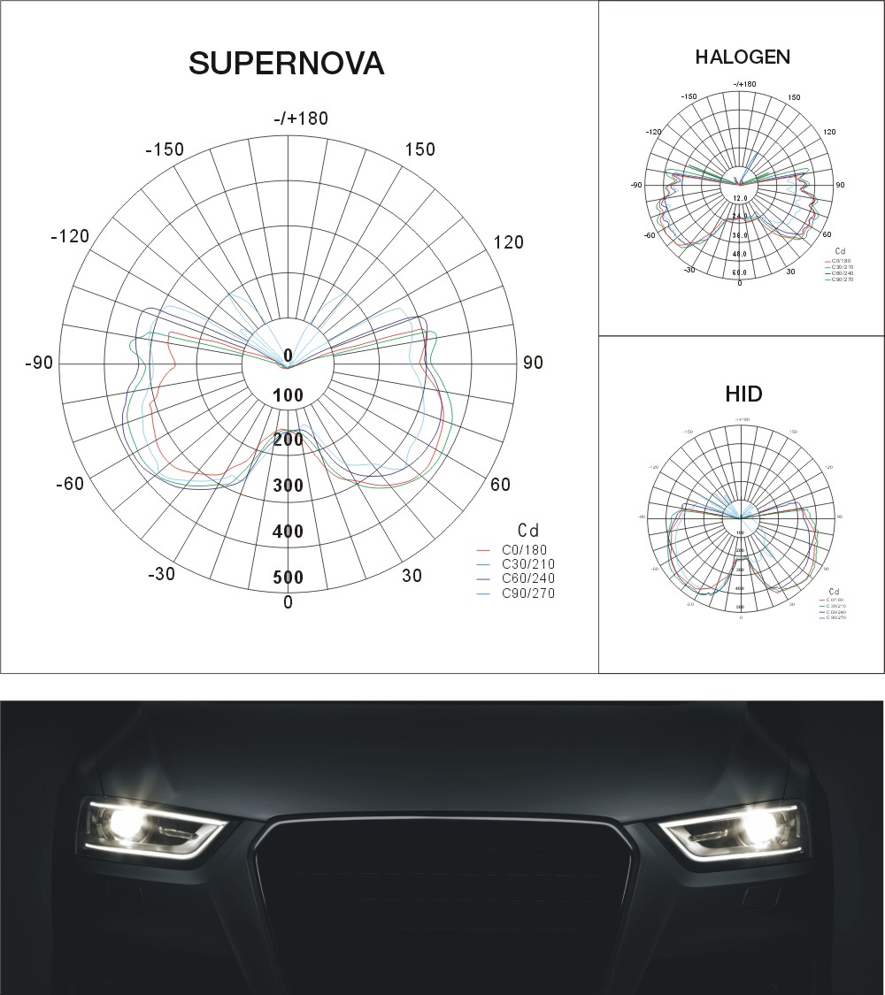 4-ABT makes the light distribution to be equivalent to Halogen head lamp and still keeps high
