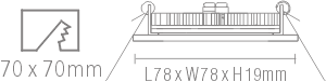 | Cut-out size: | L70 x W70mm |