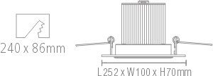 | Size: | L252x W100 x H70mm |