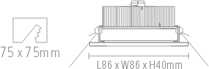 | Cut-out size: | L75 x W75mm |